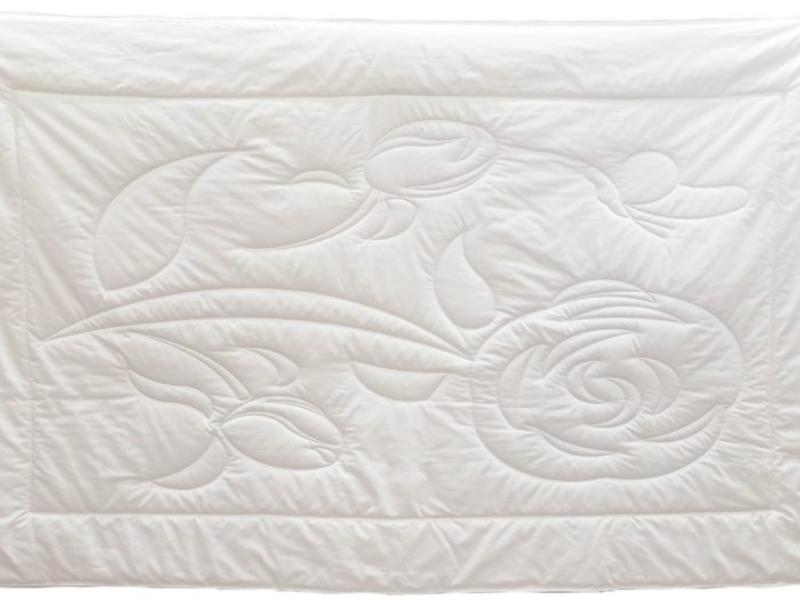 Технология пошива одеяла: Стежка на одноигольной машине по оригинальному цветочному рисунку, по периметру одеяла двойная отделочная строчка, которая исключает миграцию наполнителя через швы.