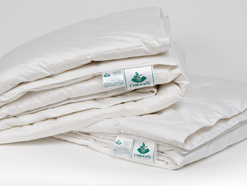 Наполнитель: натуральный белый пух категории Экстра нового сбора, прошедший дополнительную ручную сортировку и антимикробную обработку (белого цвета).