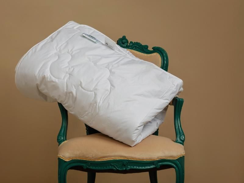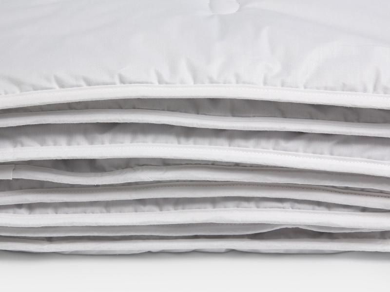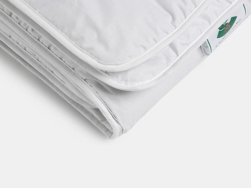 В одеялах коллекции «Верблюжья шерсть» название говорит само за себя, здесь царствует теплая от природы, верблюжья шерсть. Она превосходна своим сухим, терапевтическим теплом, богата животным воском, что позволяет снимать статическое напряжение и оказывать косметическое воздействие на кожу спящего человека. Для исключения миграции шерсти на поверхность ткани в качестве чехла используется пуходержащий тик белого цвета, что позволяет использовать постельные принадлежности любого, в том числе самого светлого, оттенка. Наполнитель: Верблюжья шерсть, имеет сухое терапевтическое тепло (предохраняет от перегрева когда жарко и от переохлаждения – когда прохладно), дополнена связующим биоволокном, позволяющим стирать изделие, а наполнителю не распадаться. Технология пошива одеяла: Стежка на одноигольной машине по индивидуальному рисунку, окантовка края одеяла из основной ткани. Ткань чехла: 100% хлопок —мерсеризованный тик полотняного переплетения из длинноволокнистого хлопка, обеспечивающего отсутствие ворсистости и однородность ткани. Высокая плотность: 206/155 нитей на 10 см²,135 г/м². Цвет белый. Подобного качества ткань технологически необходима для использования с верблюжьей шерстью.