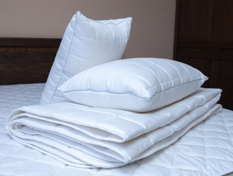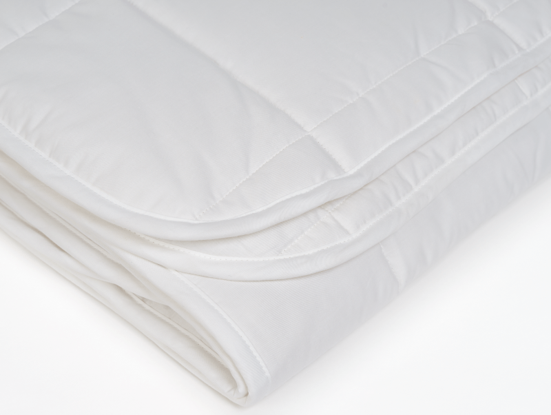 Ткань чехла: 100% хлопок — гребенной сатин (мерсеризованный) из длинноволокнистого хлопка, обеспечивающего отсутствие ворсистости, тонкую и ровную ткань. Высокая плотность: 268/186 нитей на 10 см²,135 г/м². Цвет кипельно белый.