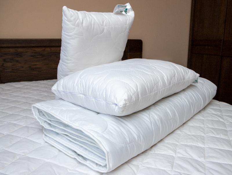 Наполнитель: В стеганом чехле бамбуковое волокно, обладающее явными антибактериальными свойствами. Внутри подушки – холфитекс (полое силиконизированное микроволокно).