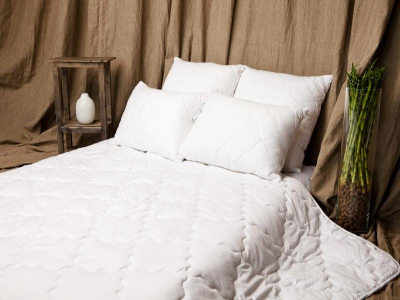 Наполнитель: В стеганом чехле бамбуковое волокно, обладающее явными антибактериальными свойствами. Внутри подушки – холфитекс (полое силиконизированное микроволокно).