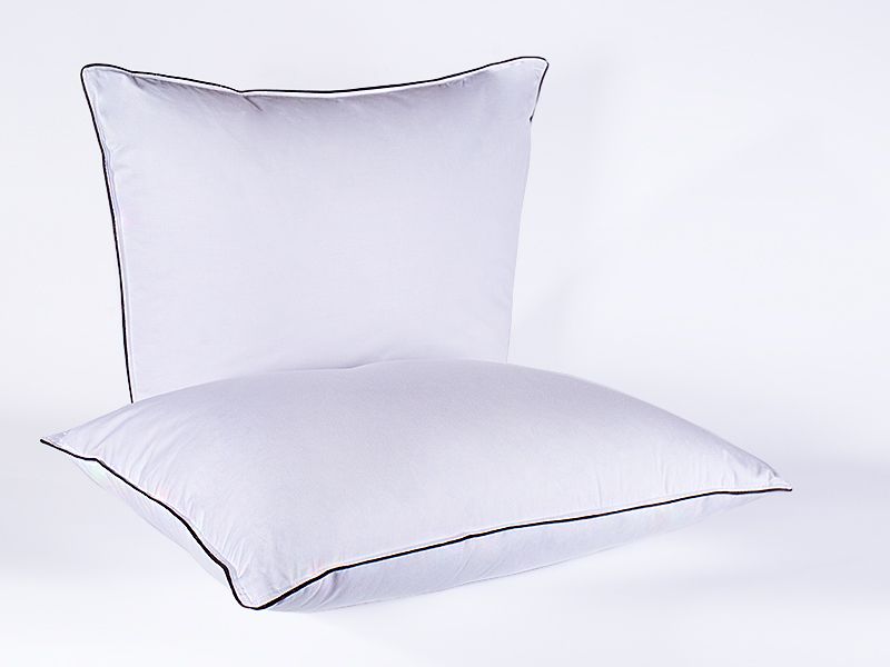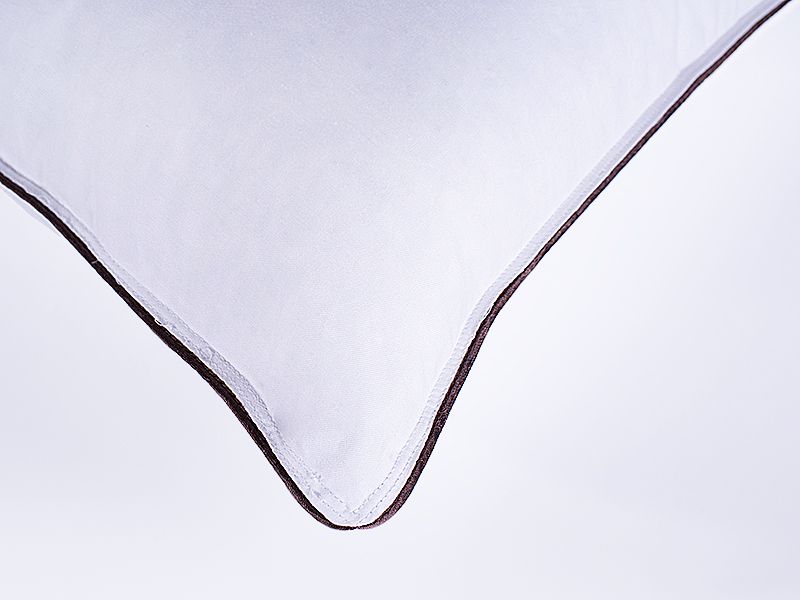 Технология пошива подушки: Классическая конструкция, по периметру атласный кант и двойная отделочная строчка, которая исключает миграцию наполнителя через швы.
