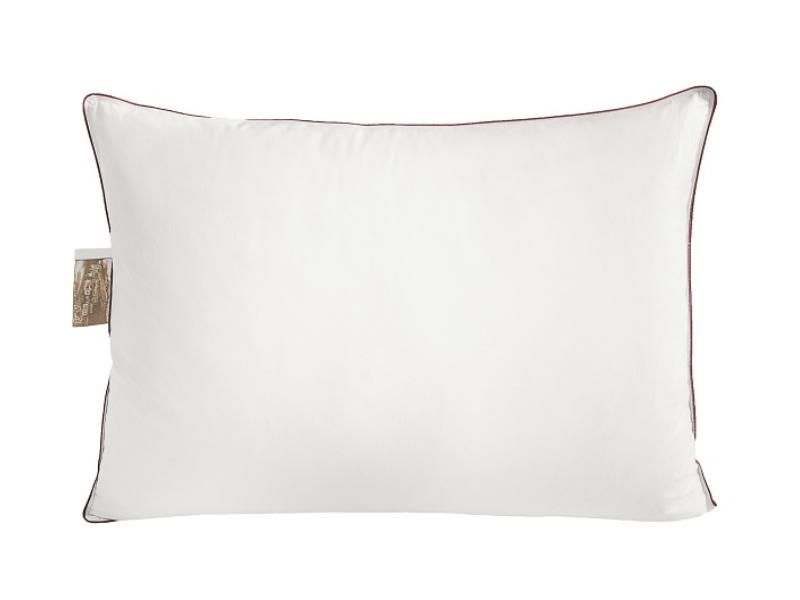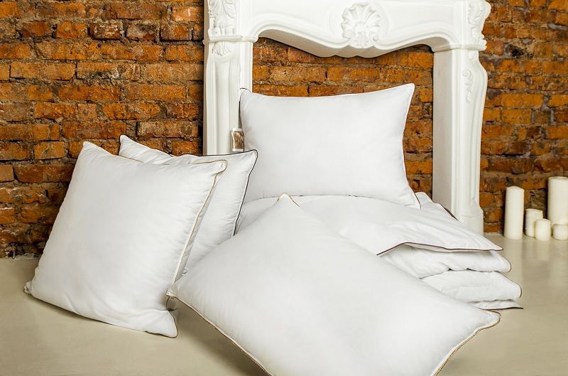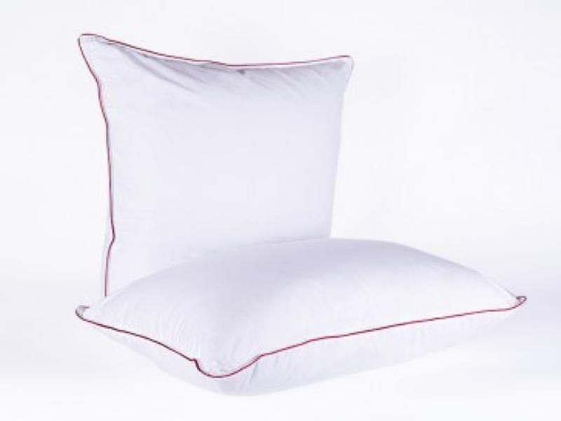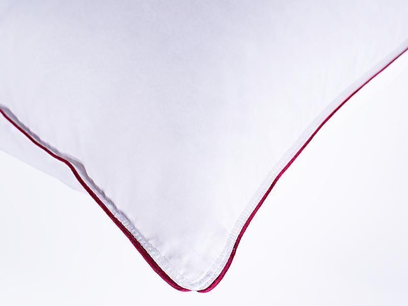 Технология пошива подушки: Классическая конструкция, по периметру атласный кант и двойная отделочная строчка, которая исключает миграцию наполнителя через швы.
