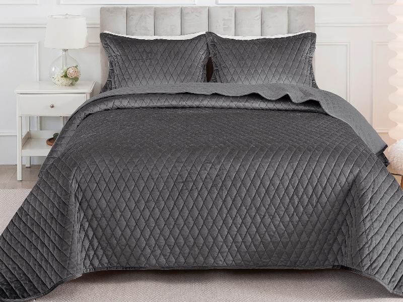 Покрывало изготовлено из велюра, мягкой и бархатистой ткани. Велюр получается путем переплетения пяти нитей, четыре из них попарно образуют верхнюю и нижнюю основы, а пятая — образует ворс. Велюр не мнется, прост в уходе и невероятно мягкий. Покрывало из велюра украсит Ваш интерьер и будет греть не одну зиму.