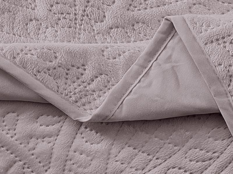 Покрывало изготовлено из велюра, мягкой и бархатистой ткани. Велюр получается путем переплетения пяти нитей, четыре из них попарно образуют верхнюю и нижнюю основы, а пятая — образует ворс. Покрывало из велюра мягкое и очень приятное на ощупь.