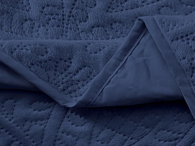 Покрывало изготовлено из велюра, мягкой и бархатистой ткани. Велюр получается путем переплетения пяти нитей, четыре из них попарно образуют верхнюю и нижнюю основы, а пятая — образует ворс. Покрывало из велюра мягкое и очень приятное на ощупь.