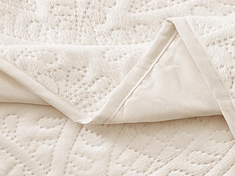 Покрывало изготовлено из велюра, мягкой и бархатистой ткани. Велюр получается путем переплетения пяти нитей, четыре из них попарно образуют верхнюю и нижнюю основы, а пятая — образует ворс. Покрывало из велюра мягкое и очень приятное на ощупь.