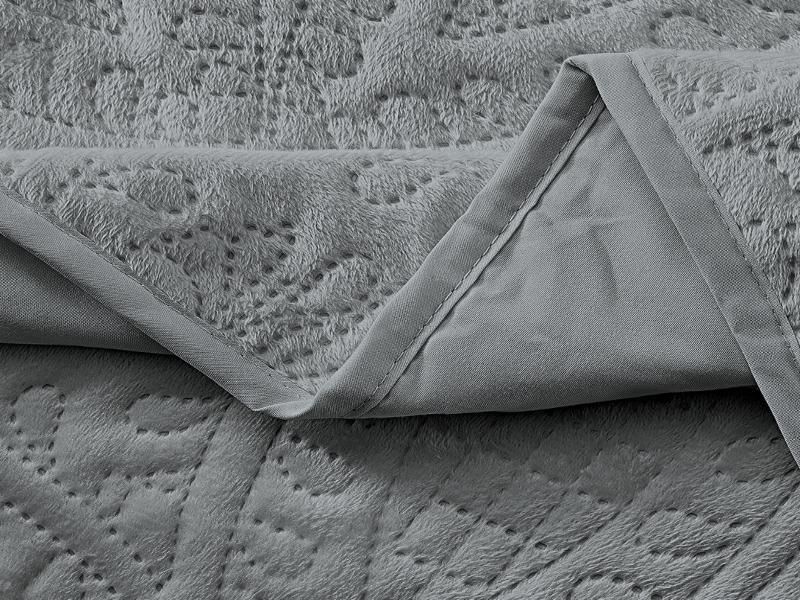 Покрывало изготовлено из велюра, мягкой и бархатистой ткани. Велюр получается путем переплетения пяти нитей, четыре из них попарно образуют верхнюю и нижнюю основы, а пятая — образует ворс. Покрывало из велюра мягкое и очень приятное на ощупь.